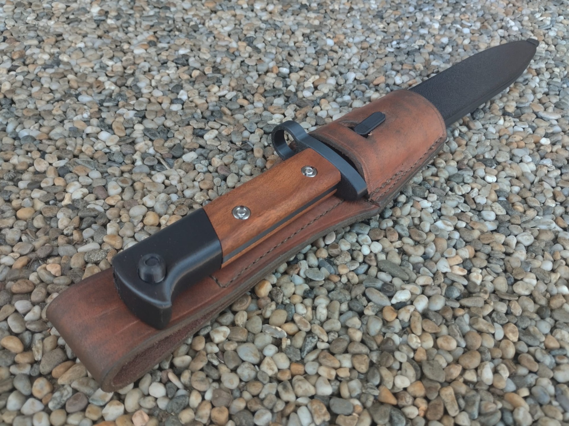 Pro tloušťku čepele je k dispozici plastové pouzdro, které je kompatibilní s originálním koženým závěsníkem pro vz.24, ale i s různými německými závěsniky.